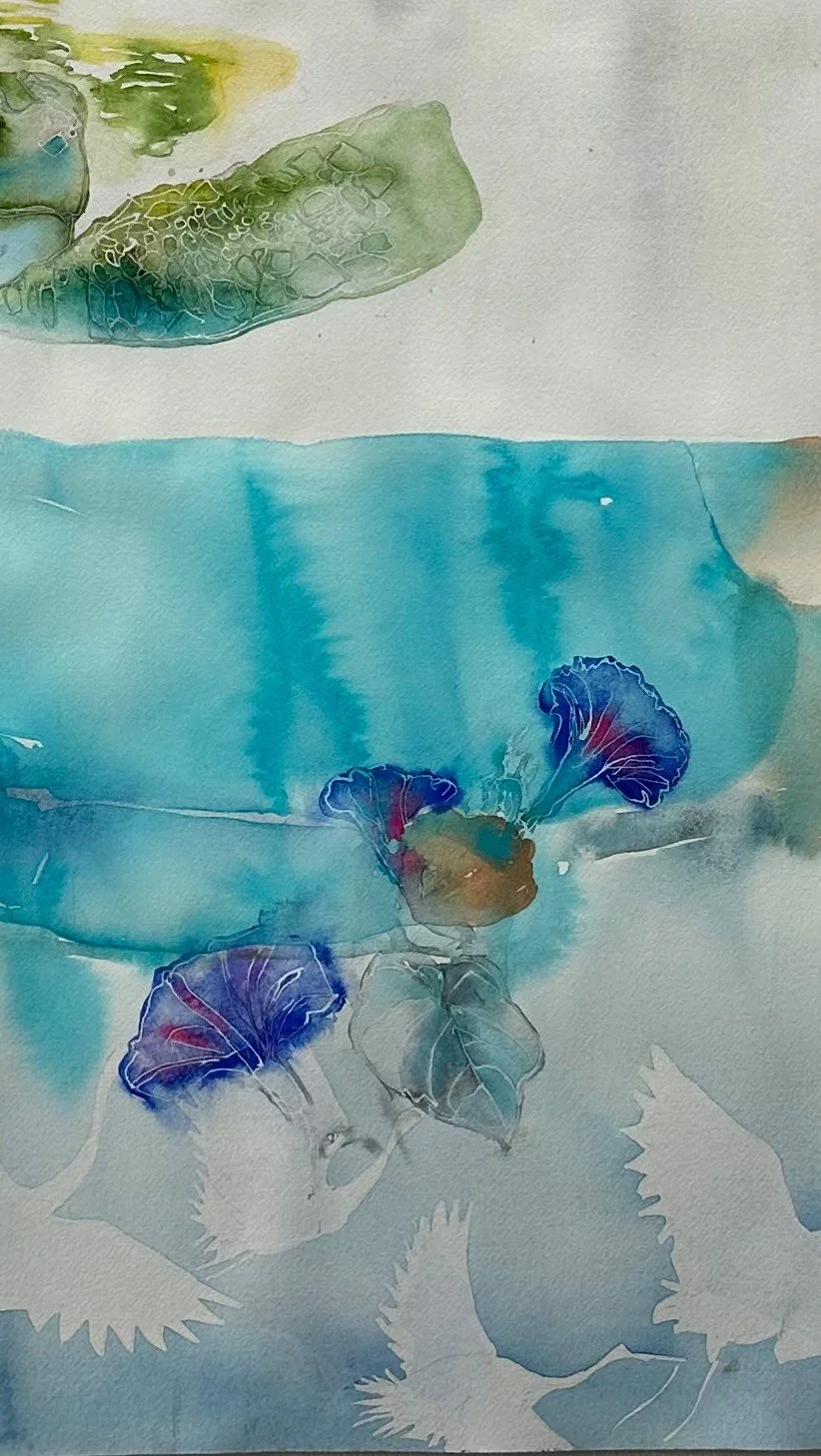 I began painting swimmers in the early 80’s. It was easy to connect to the child that delights in being in water. The series grew as I began portraying the adult figure in pool. Water became symbolic for heralding all the trials that my life held at the moment. The series continues to grow and expand as I age into more and more challenges that life can present. Many chapter of my life have been loving painted and recorded in the swimmer series: mothering, aging, loss, growth, maturity, and creativity. I will probably continue the series for quite some time to come.